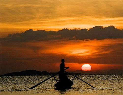 Có cái “các” quá giang của Lê Trung Quang cho mượn, tôi không phải mất ba đồng tiền đ̣. Qua sông Chu gió vù vù bên tai, tôi phải kéo vành mũ len, trùm thấp cho đỡ run. Tôi về đến nhà, trời đă sẩm tối, con mực xông ra í a í ẳng vờn chân lên hông. Vợ tôi bế thằng Văn ngủ kh́ trong ḷng, ngồi bên bếp than vỏ cao su um khói. Bên cạnh, thằng cu Thức bốn tuổi đang liến láu. C̣n Học – thằng con nhớn đang học bài ở nhà trên.